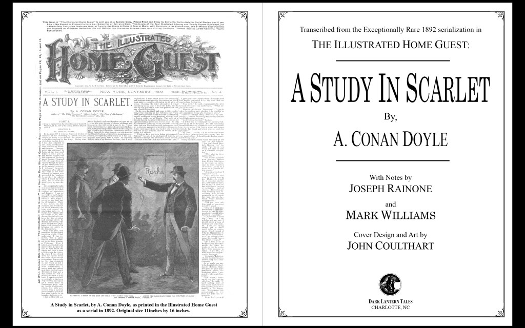 Also in this book is the first reprinting of the rarest serialization of the first Sherlock Holmes story, A Study in Scarlet, published in The Illustrated Home Guest during 1892. This was transcribed from the only known complete copy of this serialization.